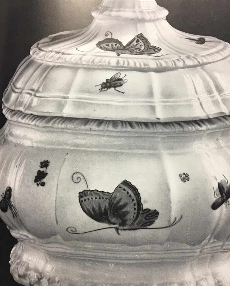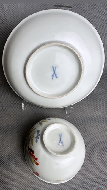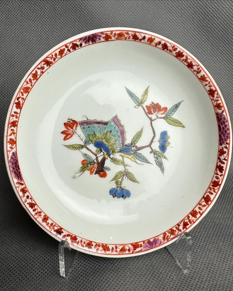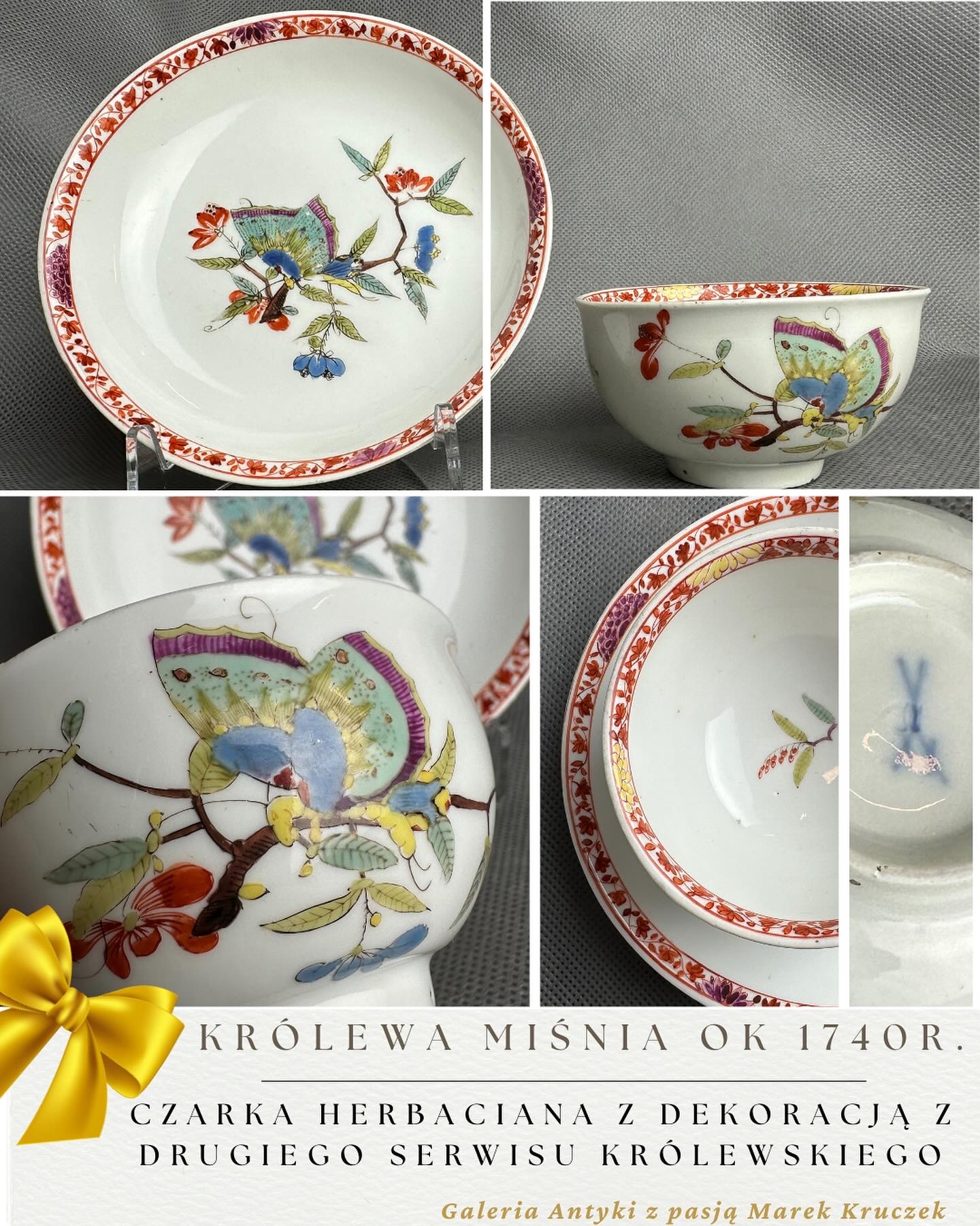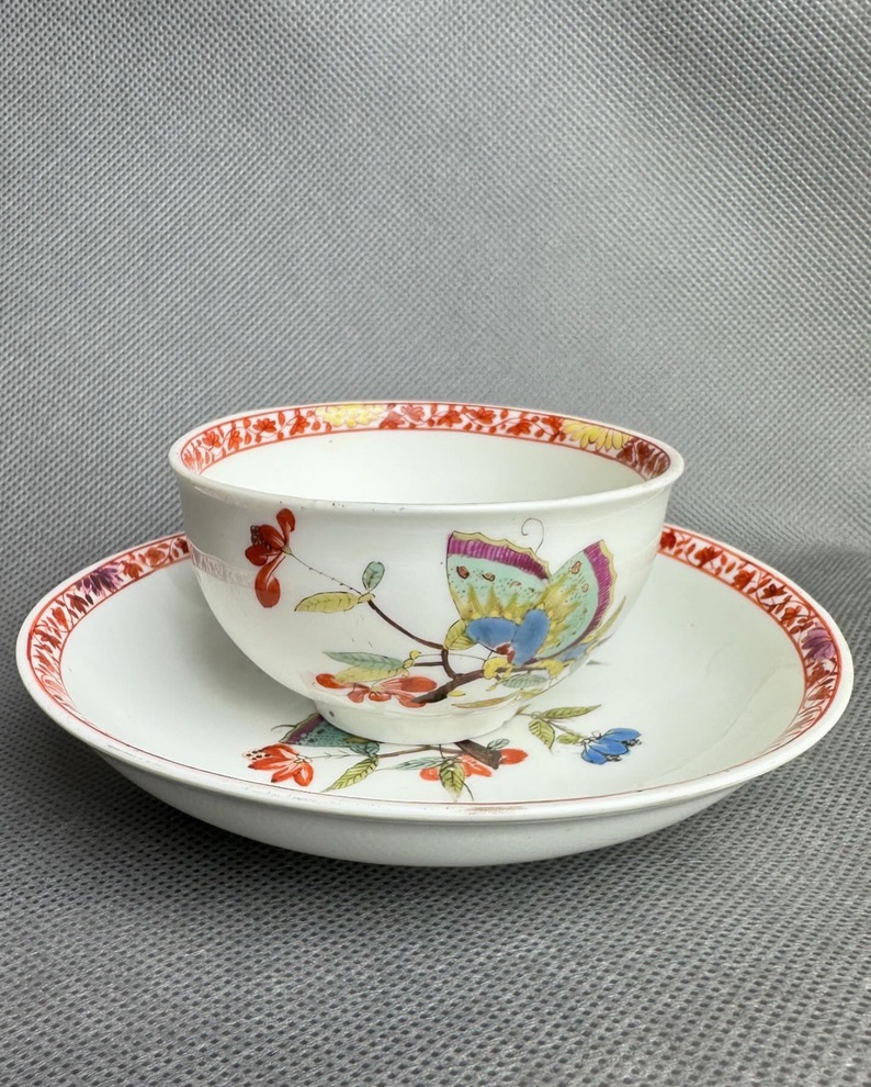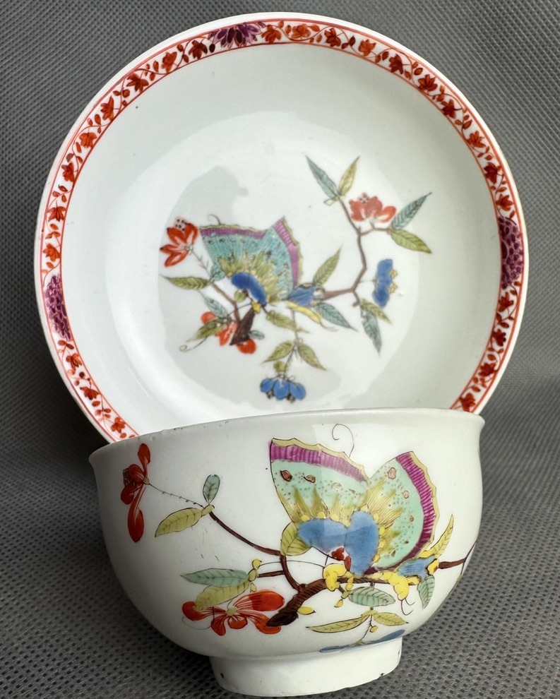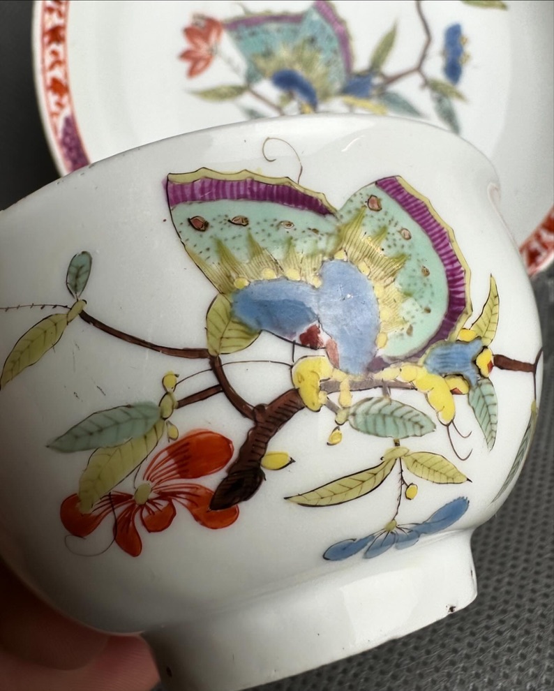 Królewska Miśnia ok 1740 r. czarka z talerzykiem z dekoracją motylą – obowiązkowy obiekt w każdej kolekcji Miśnieńskiej!!!!