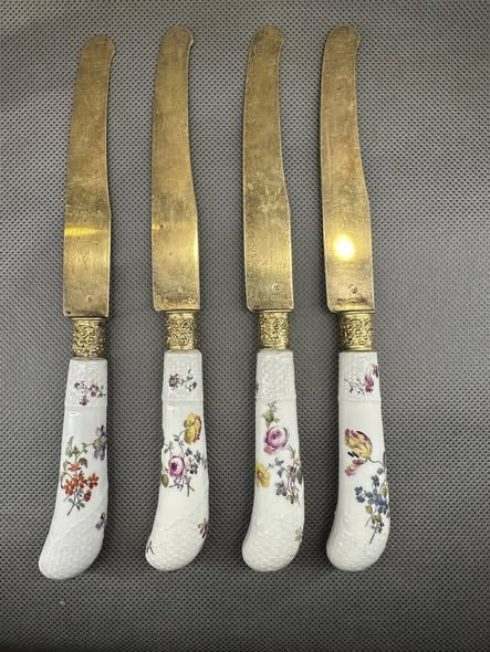 Podobne przykłady takich sztućców jak tutaj pokazywane znajdują się dziś w najważniejszych kolekcjach muzealnych świata, między innymi w Metropolitan Museum of Art w Nowym Jorku. Zbliżone noże były też częścią słynnej kolekcji Hansa Syza, jednego z najważniejszych kolekcjonerów porcelany miśnieńskiej XX wieku.